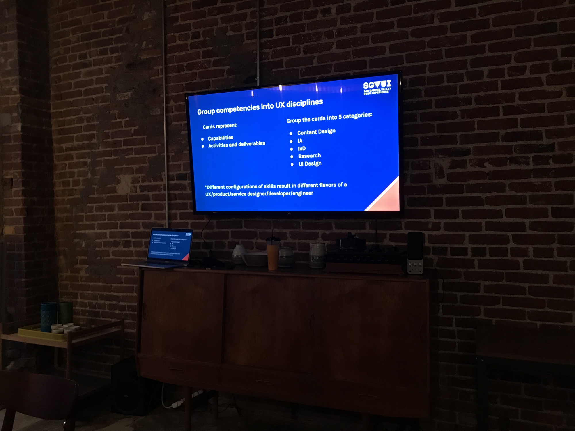 During the meet-up, Grace led the activity “Making Sense of UX Skills: A card sort”. All attendees broke out into 4 groups of 8. A lively discussion ensued as each group attempted to match a competency to a role.